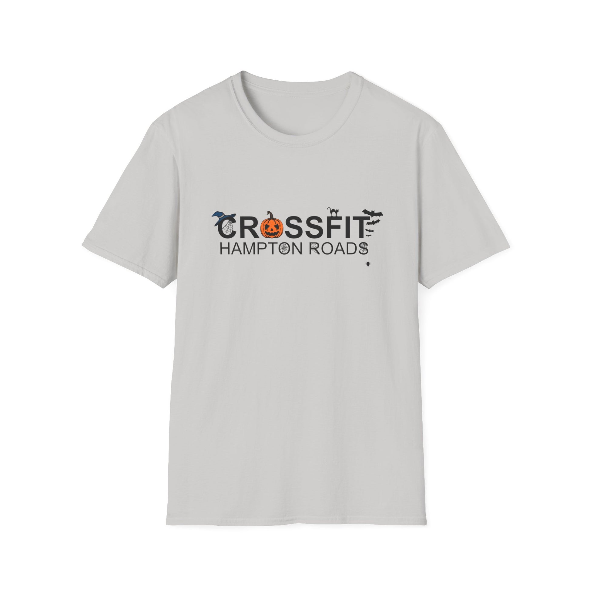 A unisex softstyle T-shirt featuring a Halloween themed logo for Crossfit Hampton Roads. This comfortable and durable shirt is perfect for those who enjoy Crossfit and want to show off their Halloween spirit. It is ideal for adults looking for a unique workout shirt.